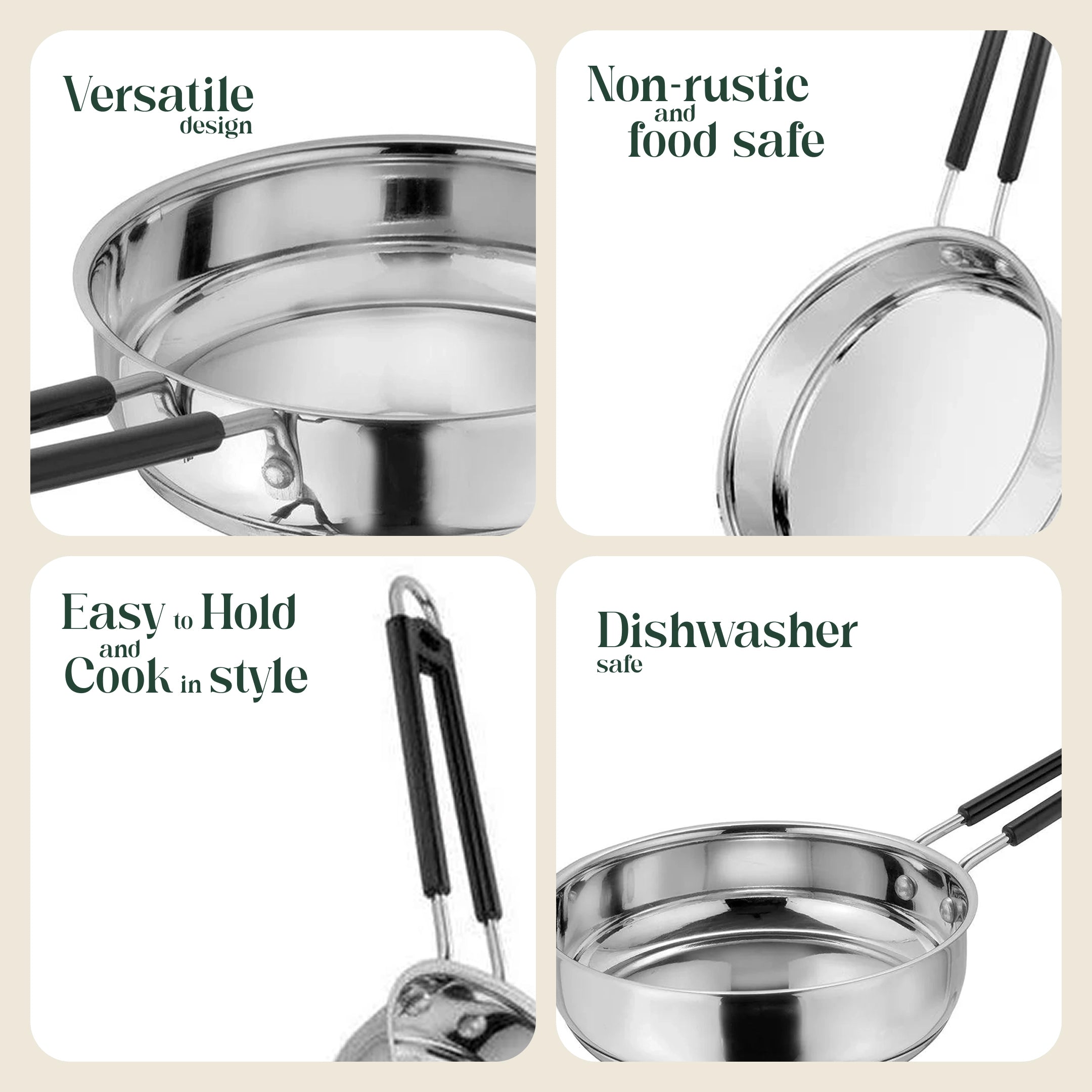 Experience hassle-free cooking with our stainless steel triply non-stick frypan, designed for even heat distribution, long-lasting performance, and healthy cooking. Perfect for frying, sautéing, and shallow cooking on gas, induction, and electric stoves.